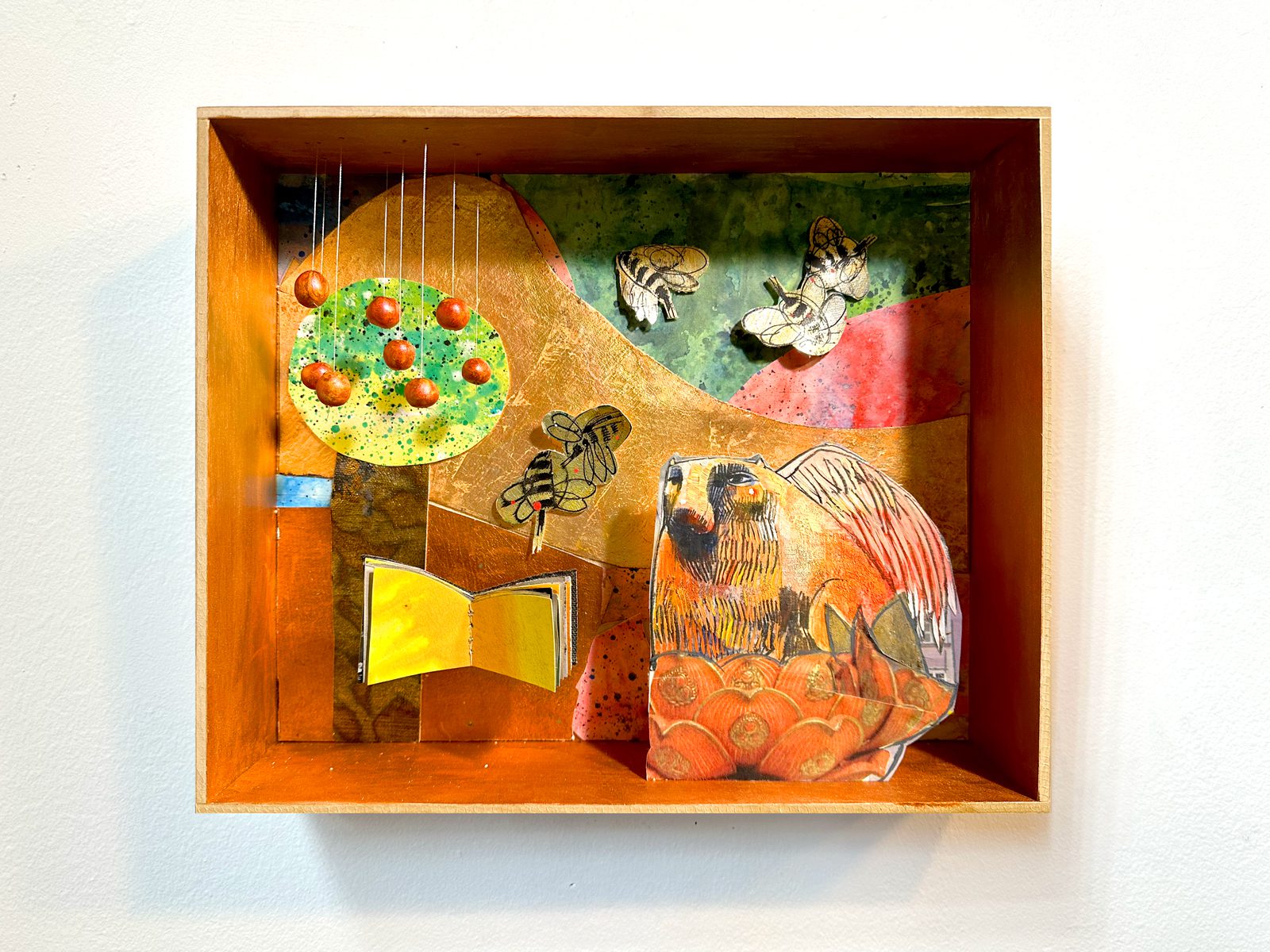 9.5″ x 12.5″ x 2.5″ wooden box and mixed media